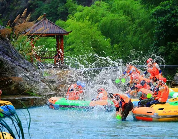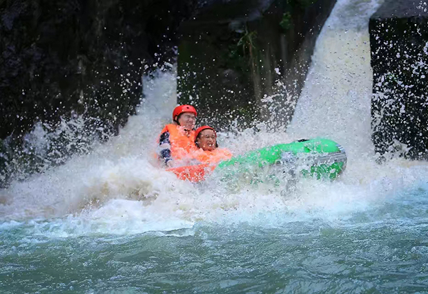 “中南五省第一漂”之称的【凤凰峡漂流】,位于湖南省浏阳市龙伏镇石柱峰风景区,景区漂流全程3.8公里,落差198米,大小落差33个,大落差35米。漂道经过美人谷自然景区的仙境、瑶池、龙门、石上松等景点,再经风门口发电站水坝、从风门口大桥下面穿越,进入凤凰峡漂流刺激的29坝、30坝、31坝、32坝、33坝五级百米飞瀑之所在,享受伟人毛泽东所说的“到中流击水,浪遏飞舟”的极度快感!凤凰峡漂流起漂点在石柱峰村,河道两岸山青水秀,树木葱茏,鸟语花香,天然景点繁多,聚泉成河的溪流,连续不断的激流飞瀑区,几十个落差将冲击心理承受极限,漂完全程约90-100分钟。